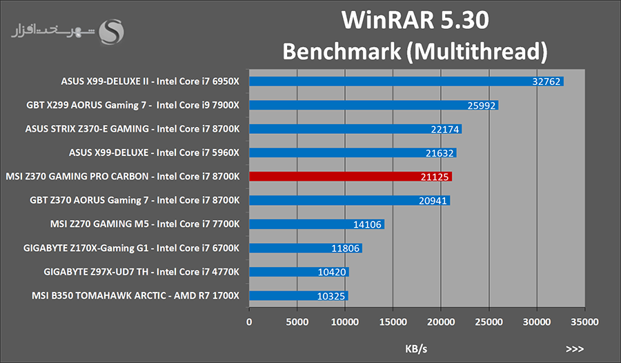 فرآیند Zip و یا Unzip کردن اطلاعات همیشه جزو یکی از کاربردیترین و در عین حال معمولترین کارهایی است که استفاده کنندگان از کامپیوترهای شخصی در طول روز با آن سر و کار دارند. از جمله معروفترین و شناخته شده ترین نرمافزارهای این امر WinRAR و 7-Zip هست که همواره خود را همگام با ارائه آخرین فنّاوریهای سختافزاری بروز نگاه میدارد تا بهترین کارایی ممکن را از خود ارائه دهد. این نرم افزارها دارای یک بخش Benchmark Tool مستقل میباشند که نتایج به دست آمده در این قسمت در نمودارهای زیر درج شده است.