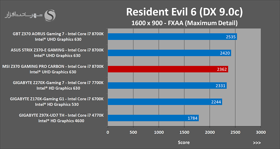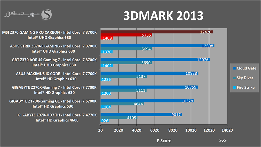 همانطور که در صفحات ابتدایی این بررسی اشاره شد یکی از قابلیتهای جدید معماری Coffee Lake بهبود کارایی و افزایش امکانات و قابلیتهای تراشههای گرافیکی مجتمع بر روی پردازندههای این معماری میباشد. به همین دلیل در این بخش قصد داریم توسط نرمافزارهای 3DMARK و چند گیم جدید و مدرن کارایی تراشه گرافیکی Intel UHD Graphics 630 مجتمع بر روی پردازنده Intel Core i7 8700K را محک بزنیم.