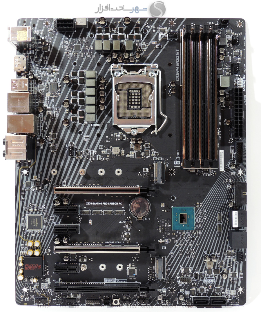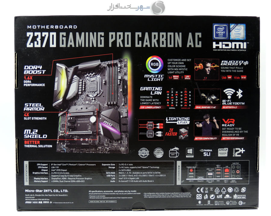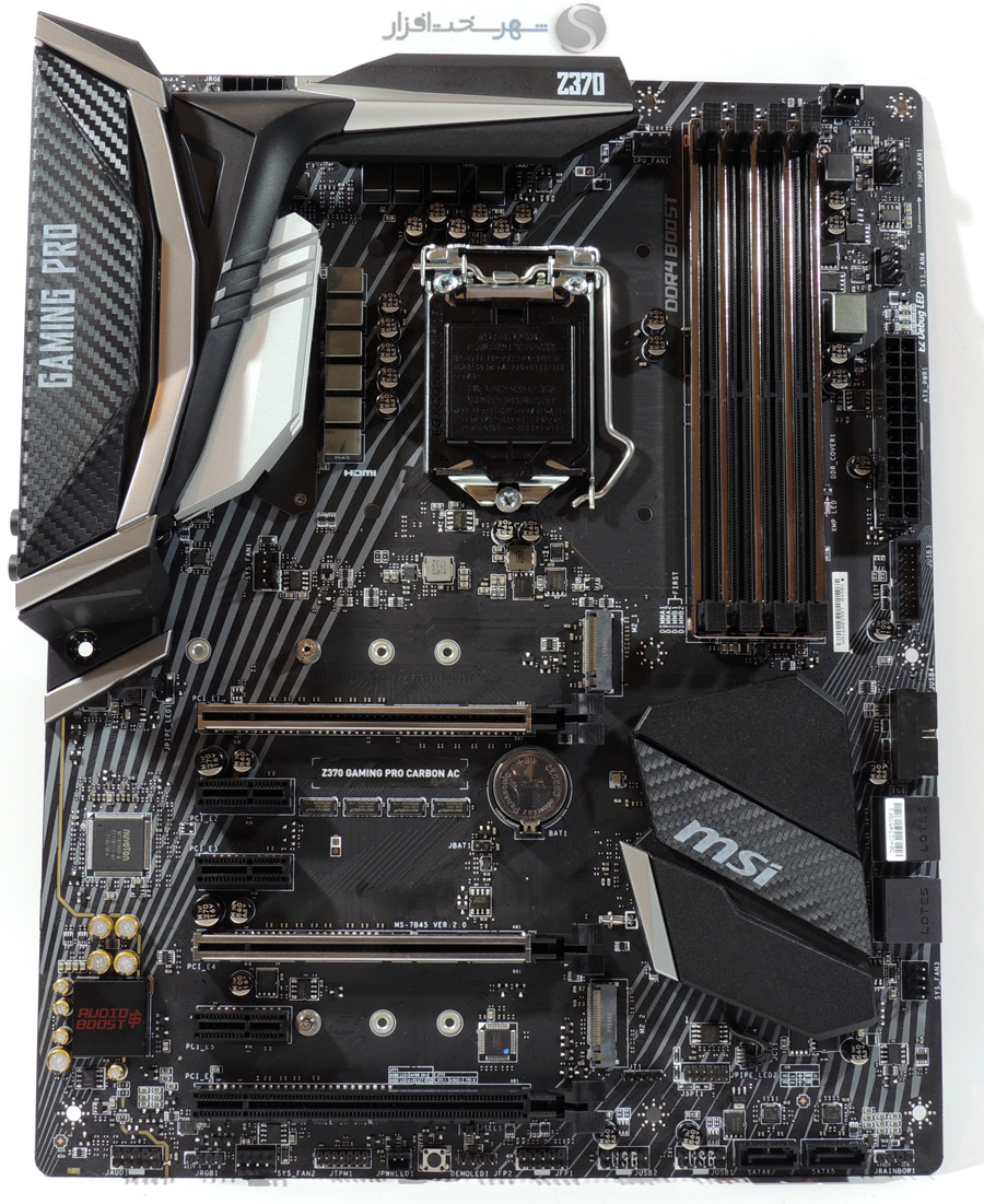 همانطور که اشاره شد مادربورد مورد بررسی ما با نام دقیق MSI Z370 Gaming Pro Carbon AC از محصولات میان رده بوده و از فیبرکربن در طراحی آن استفاده شده است. پس بدون فوت وقت به سراغ بررسی این مادربورد میرویم.