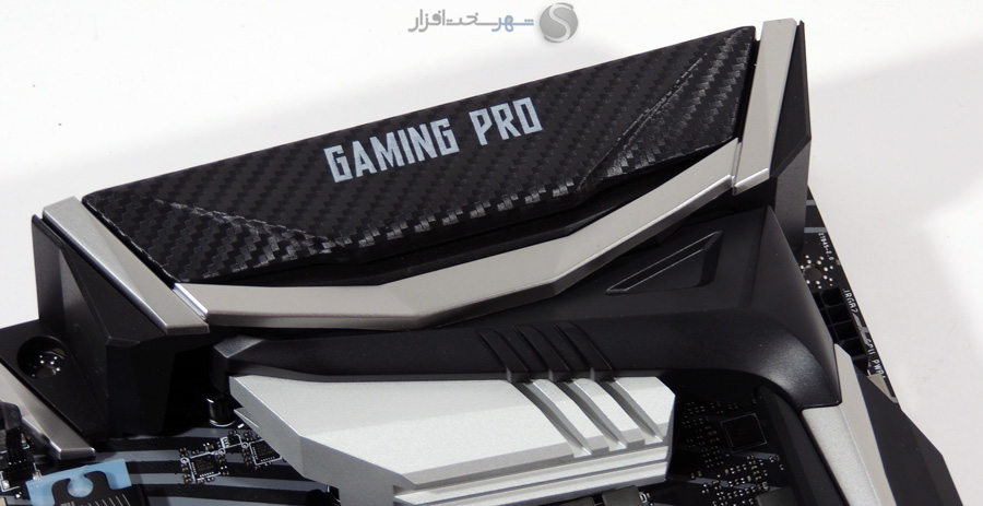 در طراحی این بورد از روکش فیبر کربن که شاید پیشتر در اتومبیلهای اسپرت دیده باشید، استفاده شده و تداعی کننده یک محصول زیبا و قدرتمند است. هیتسینکهای آلومینیومی با ترکیب رنگ نقره ای و مشکی به همراه روکشهای فیبرکربن که بر روی کاور پنل پشتی و خنک کننده PCH کشیده شده و طراحی با خطوط مورب رنگی روی سطح PCB همگی به جذابیت و زیبایی بیشتر ظاهر بورد کمک کردهاند.