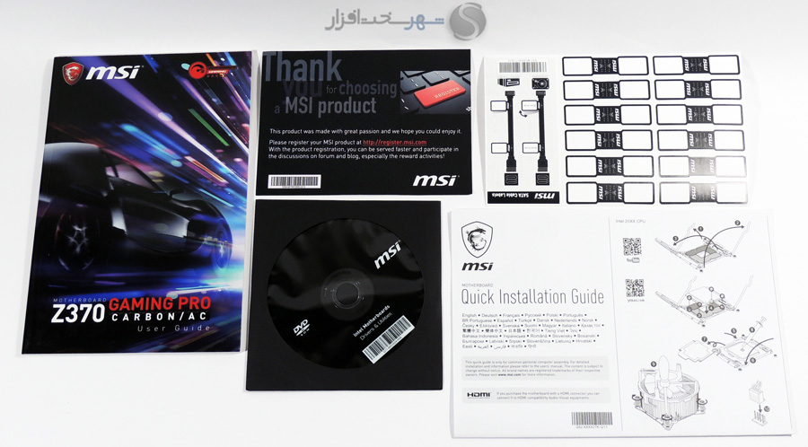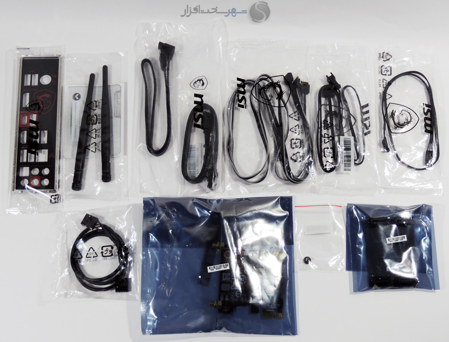 با وجود همه این قابلیتها باید دید این بورد در عمل چه تواناییهایی دارد. پس با هم به سراغ جعبه گشایی این محصول میرویم. با باز کردن جعبه، مادربورد در پوشش پلاستیکی ضد الکترواستاتیک خود قرار گرفته و باقی متعلقات در لایه زیرین جای گرفته اند که شامل موارد زیر است: