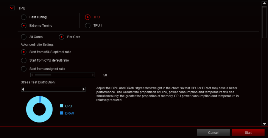 در بخش 5Way Optimization همانطور که در تصاویر بالا ملاحظه کردید این امکان فراهم شده تا تنها با تعیین یک سری اطلاعات کلی در دو سامانه TPU I و TPU II در نهایت فقط با کلیک بر روی گزینه START از اورکلاک خودکار سیستم حرفهای خود لذت ببرید.