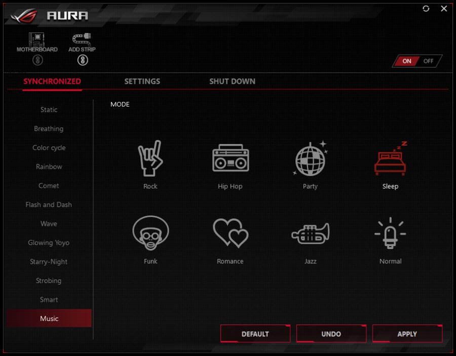 همچنین همانند نسخههای قبل قابلیت نورپردازی با توجه به موسیقی در حال پخش نیز برای این مادربرد فراهم شده است. البته در نسخه جدید این امکان فراهم شده تا برای هماهنگی بیشتر حتی ژانر موسیقی مورد علاقه خود را نیز تعیین کنید!