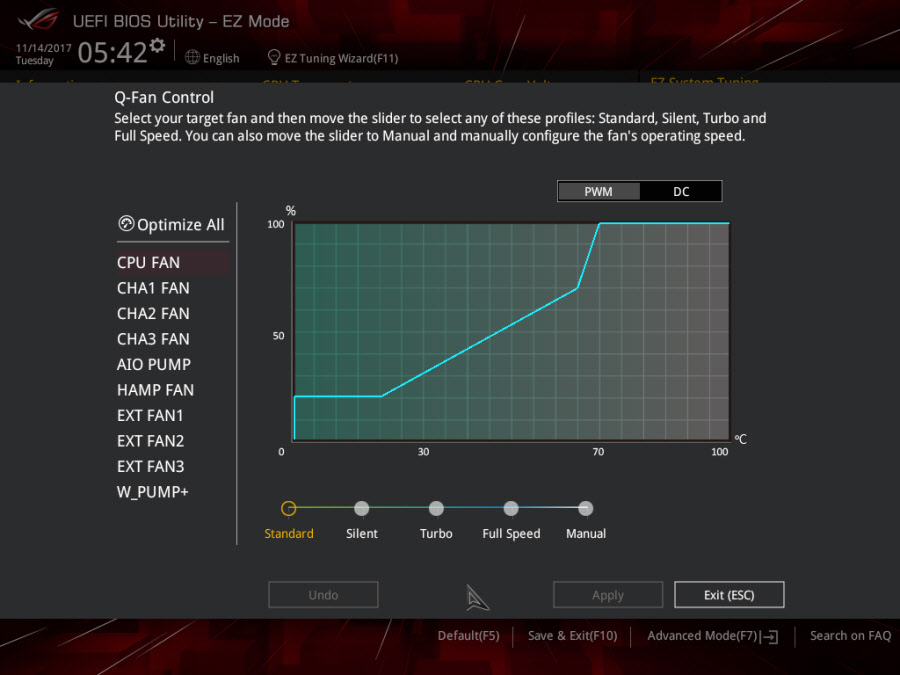 در نهایت در قسمت FAN Xpert 4 نیز علاوه بر تعبیه پروفایلهای آماده برای کنترل فنهای مختلف سیستم، امکان تعیین سرعت چرخش فنها بهصورت دستی و حتی در وضعیتهای مختلف نیز فراهم شده است.