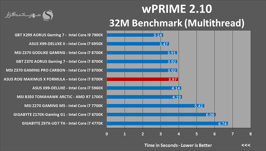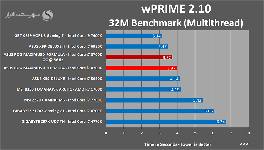 wPrime از جمله نرمافزارهایی میباشد که با محاسبه الگوريتمی تکرار شونده (تخمين تابع به روش نيوتن) بهصورت کاملاً Multithread، يکی از بهترين نرمافزارهای موجود براي تست کارایی پردازنده و مادربرد محسوب میشود.Super PI نیز یک نرم افزار Single Thread برای محاسبه عدد π با استفاده از الگوریتم Gauss–Legendre تا 232 رقم اعشار است. فرکانس و معماری هسته پردازنده تعیین کننده ترین عوامل در افزایش سرعت پردازش این نرم افزار هستند.