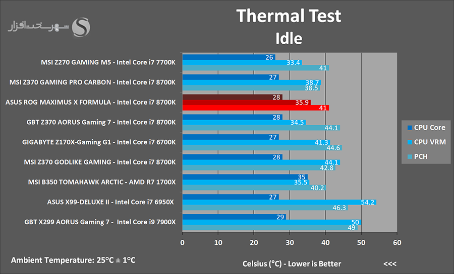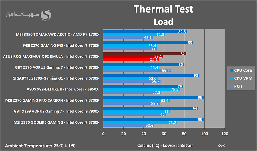 همان طور که ملاحظه می کنید به سبب تبعیت کامل این مادربرد از P-state های اینتل به همراه بازدهی مصرف انرژی بسیار بالای مدار رگولاتور ولتاژ پردازنده و ماژولهای RAM شاهد ثبت نتایجی بسیار ممتاز در این بخش هستیم.