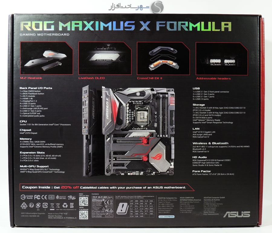 چندسالیست مادربردهای سری ROG ایسوس به غیر از نام و ظاهر، از نظر امکانات و قابلیتهای تعبیه شده نیز دارای اصالت خاصی هستند و از یک چهارچوب مشخص پیروی میکنند. نسلهای اخیر سری Maximus در مدلهایی نظیر Hero، Formula و Apex عرضه شده اند که ضمن پوشش نیازهای مختلف کاربران، به طور ویژه برای یک طیف خاص بهینه سازی شده اند. مادربرد مورد بررسی ما با نام دقیق Maximus X Formula از سری مادربردهای Z370 و ساخته شده در بخش ROG شرکت ASUS است که در کنار گیمینگ و اورکلاکینگ، در طراحی آن به خنک کنندههای مایع، و به خصوص خنک کنندههای مایع سیکل باز توجه ویژهای شده است. معرفی پلتفرم Coffee Lake-S