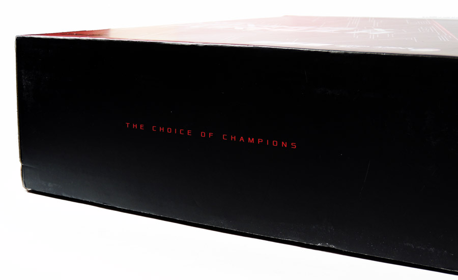 جعبهی ضخیم و خوش ساخت این محصول، به صورت کشویی باز میشود و مادربرد را زیر پوشش طلقی و شفاف خود جای داده است. سایر متعلقات نیز در لایهی زیر آن قرار گرفته اند.