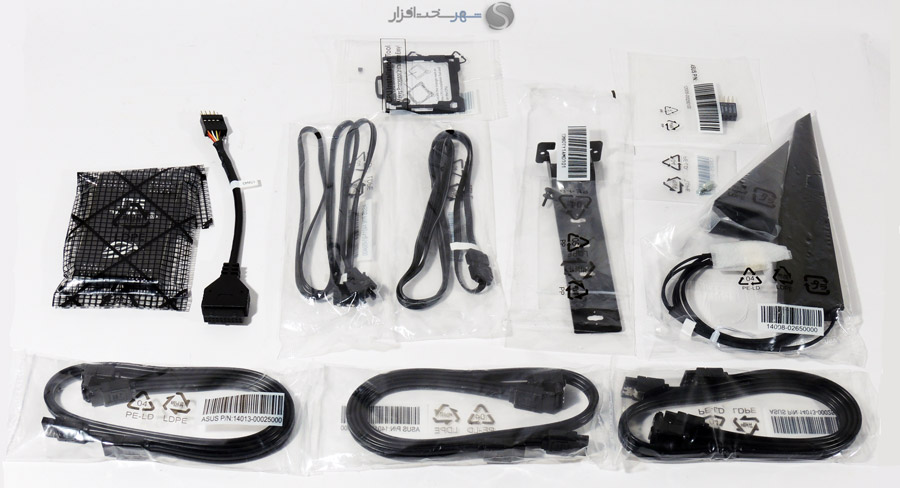 - شش عدد کابل SATA 6Gb/s (سه کابل با پورت L شکل و سه کابل دیگر به شکل تخت)