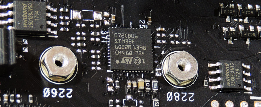 - LiveDash OLED صفحه نمایشی در وسط مادربرد که توانایی نمایش اطلاعات مختلفی دارد