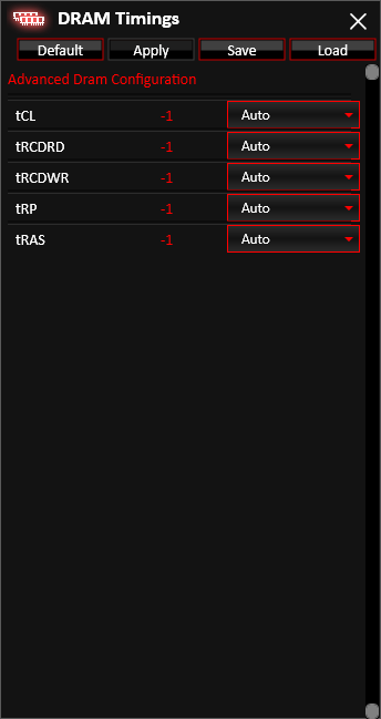 در تب DRAM امکان تغییر ولتاژ و ضریب فرکانس ماژولهای حافظه فراهم شده است. همچنین بر تمامی تایمینگ های اصلی و پیشرفته ماژولهای حافظه نیز کنترل کامل خواهید داشت.
