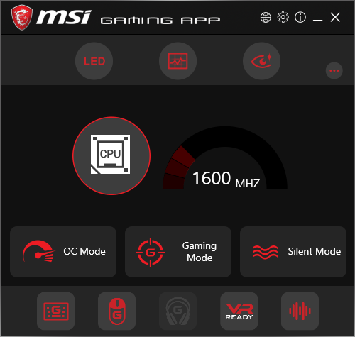 در نرم افزار Gaming APP قابلیت تنظیم پارامترهای مختلف سیستم در 3 حالت OC Mode، Gaming Mode و Silent Mode فراهم شده است. همچنین نرم افزار کنترل نورپردازی، مانیتورینگ پارامترهای مختلف سیستم، کنترل تجهیزات VR و ... نیز در این بخش پیش بینی شده است.