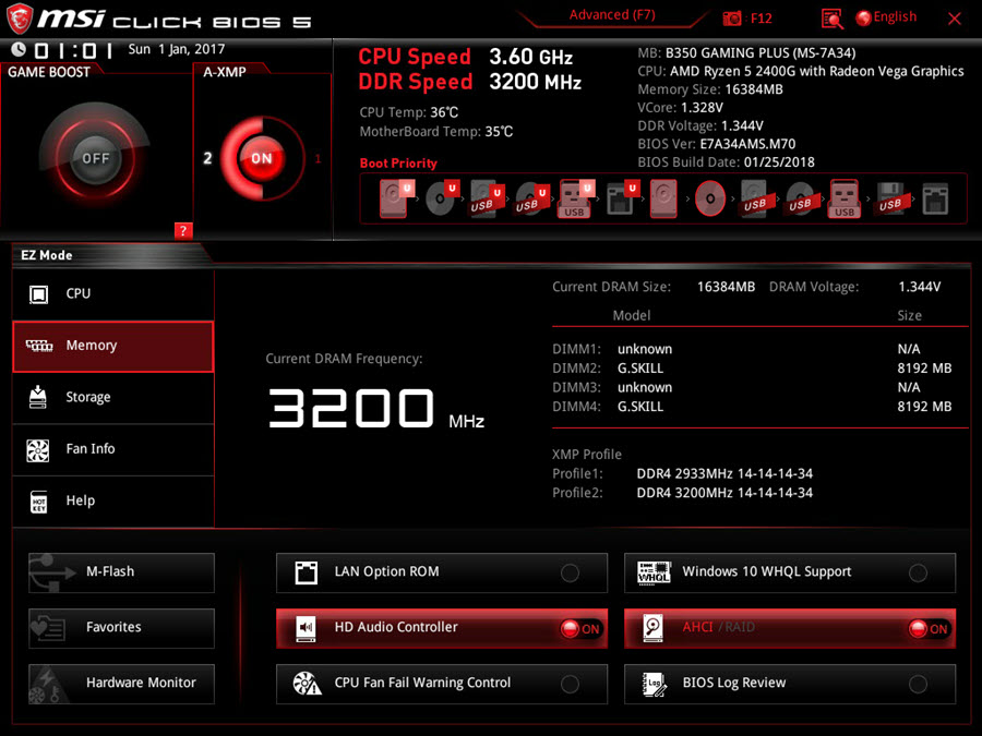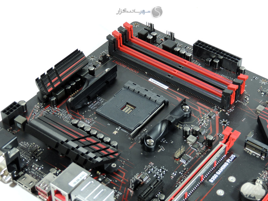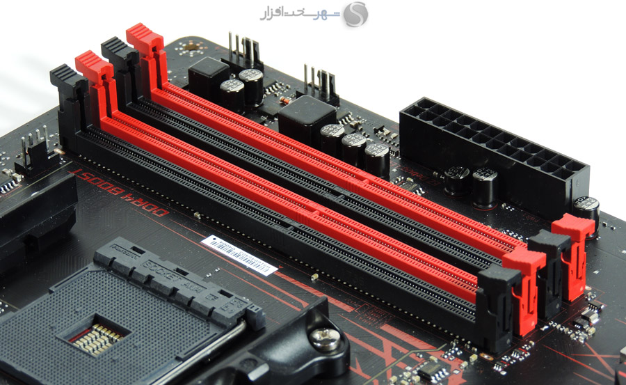 این مادربرد دارای 4 اسلات DIMM بوده که توانایی پشتیبانی از حداکثر 64GB حافظه رم DDR4 به صورت Dual Channel در سرعت استاندارد 1866/2133/2400 مگاهرتز را دارد. بیشینه سرعت پشتیبانی شده حافظههای رم به عدد 3200 مگاهرتز میرسد که از طریق فعالسازی پروفایل A-XMP یا اورکلاک قابل دسترسی است. استفاده از DDR4 Boost در طراحی اسلاتهای DIMM نیز یکی از ویژگیهای بارز این مادربرد در بخش ماژولهای حافظه است که با توجه به معرفی کوتاه این تکنولوژی در ابتدای بررسی، در بخش امکانات ویژه به معرفی کامل آن میپردازیم.