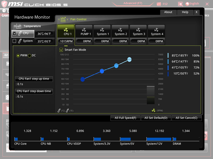 در بخش FAN نیز این امکان فراهم شده تا سرعت چرخش تمامی فنهای متصل به مادربرد را بهصورت دستی و یا با تعیین پروفایلهای مختلف تنظیم کنید.