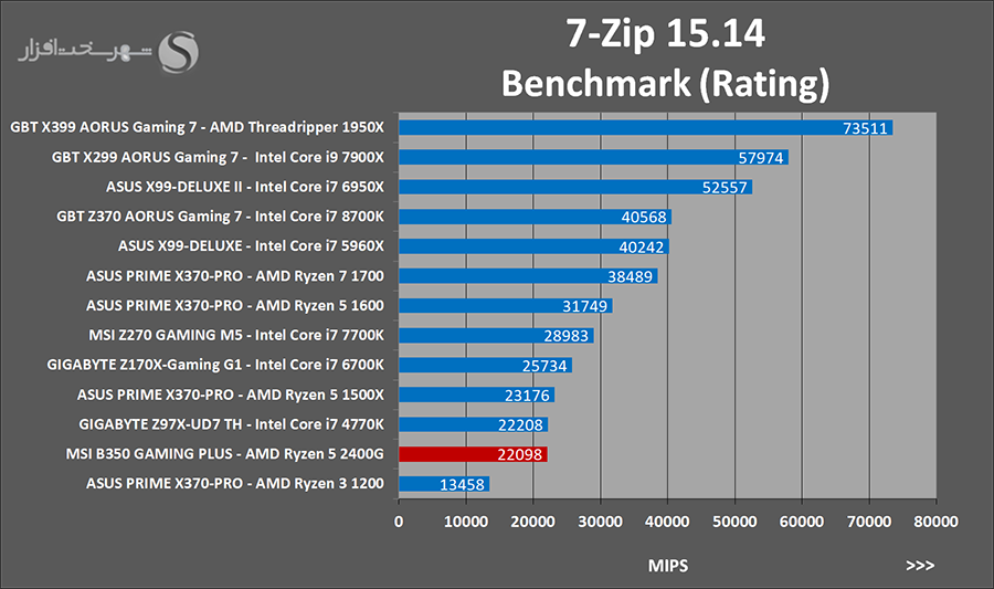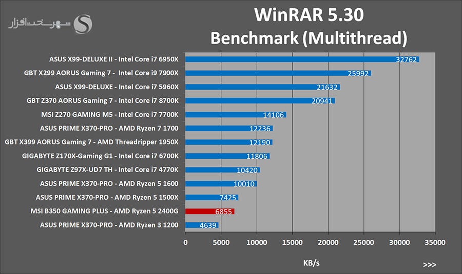 فرآیند Zip و یا Unzip کردن اطلاعات همیشه جزو یکی از کاربردیترین و در عین حال معمولترین کارهایی است که استفاده کنندگان از کامپیوترهای شخصی در طول روز با آن سر و کار دارند. از جمله معروفترین و شناخته شده ترین نرمافزارهای این امر WinRAR و 7-Zip هست که همواره خود را همگام با ارائه آخرین فنّاوریهای سختافزاری بروز نگاه میدارد تا بهترین کارایی ممکن را از خود ارائه دهد. این نرم افزارها دارای یک بخش Benchmark Tool مستقل میباشند که نتایج به دست آمده در این قسمت در نمودارهای زیر درج شده است.