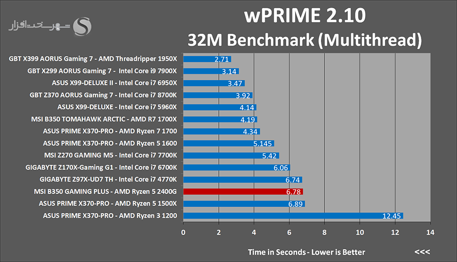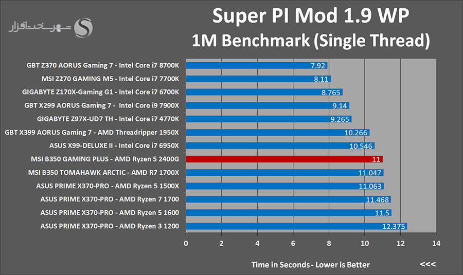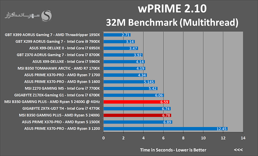 wPrime از جمله نرمافزارهایی میباشد که با محاسبه الگوريتمی تکرارشونده (تخمين تابع به روش نيوتن) بهصورت کاملاً Multithread، يکی از بهترين نرمافزارهای موجود براي تست کارایی پردازنده و مادربرد محسوب میشود. Super PI نیز یک نرم افزار Single Thread برای محاسبه عدد π با استفاده از الگوریتم Gauss–Legendre تا 232 رقم اعشار است. فرکانس و معماری هسته پردازنده تعیین کننده ترین عوامل در افزایش سرعت پردازش این نرم افزار هستند.