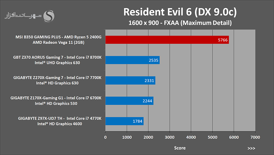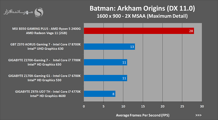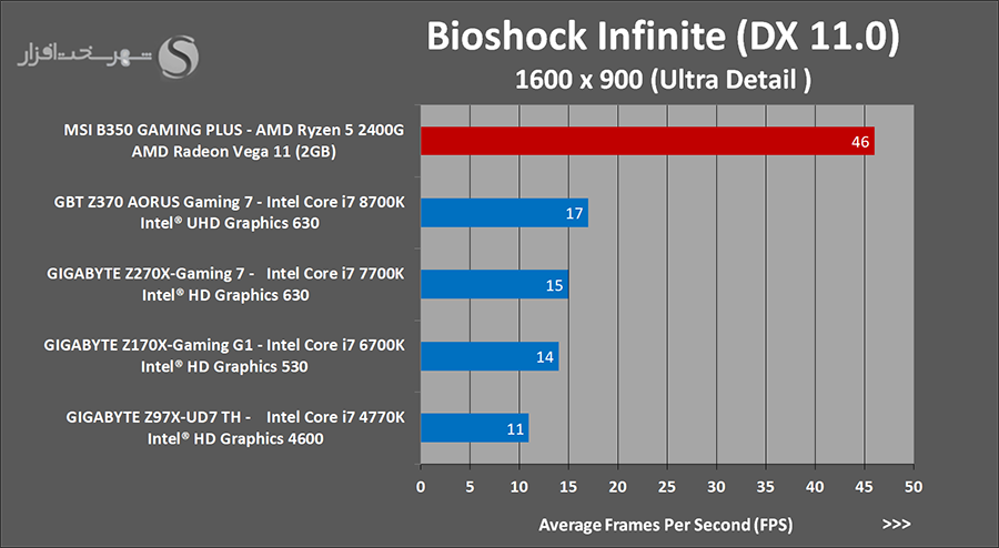 به وضوح مشخص است که در این حالت کارایی این IGP تقریباً حتی از کارت گرافیک مجزا NVIDIA GeForce GT 1030 2GB نیز فراتر رفته است .