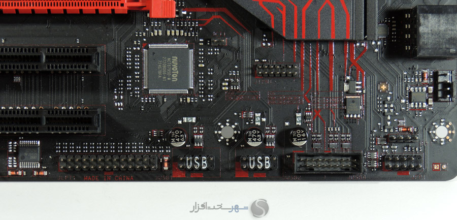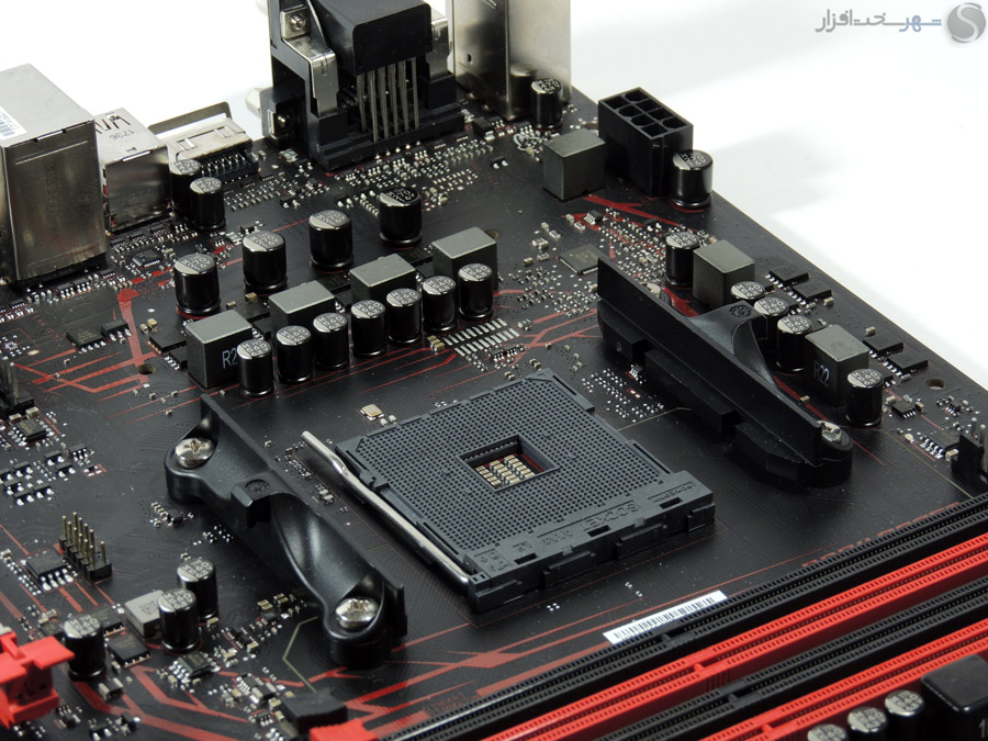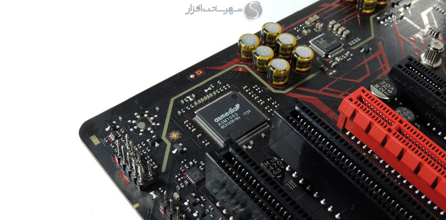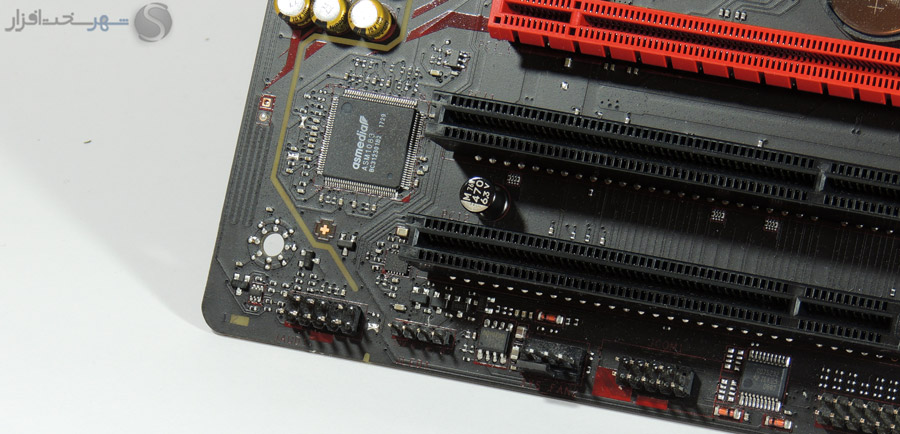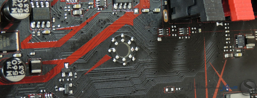 اسلات اول PCI Express X16 نیز توسط استیل ضد زنگ مقاوم سازی شده تا در اثر فشار ناشی از وزن و گرمای کارتهای گرافیک تغییر شکل ندهد.