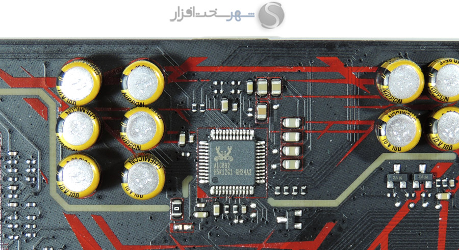 قلب این سیستم در واقع یکی از تراشههای پرکاربرد در مادربردهای میان ردهی سالهای گذشته، ALC892 ساخت Realtek است. SNR این تراشه در بخش خروجی به 95 دسیبل و در بخش ورودی به 90 دسیبل میرسد تا حاصل، صدایی با کیفیت چه در ضبط و چه در پخش باشد. اگرچه این تراشه با Codecهای جدید شرکت Realtek مانند 1220 و 1150 قابل مقایسه نیست اما تواناییها آن در پشتیبانی از صدای 7.1 و Sample Rate 24bit/192kHz برای مادربردی در ردهی اقتصادی کاملا قابل قبول است.