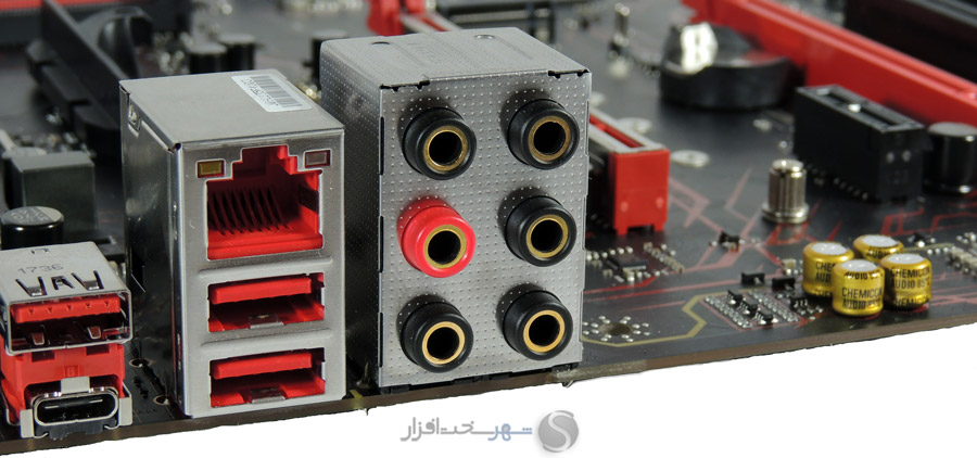 خروجیهای صدا نیز در این مادربرد در بخش آنالوگ از نوع 7.1Channel مجهز به جکهای 3.5mm با روکش طلا است که در عمل باعث افزایش کیفیت اتصال، کاهش نویز و خوردگی و اکسیداسیون در اثر رطوبت و قطع و وصل مکرر میشود.