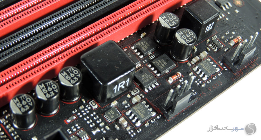 جریان و ولتاژ ماژولهای رم نیز بر عهده یک فاز شامل ماسفتهای PK632BA و PK616BA برای بخش LowSide و HighSide و کنترلر 8Y=4F ساخت Richtek قرار گرفته است. بخش VPP نیز از همین ماسفتها و کنترلر تشکیل شده است تا پتانسیل بالای اورکلاک رم حتی برای این برد ارزان قیمت نیز وجود داشته باشد.