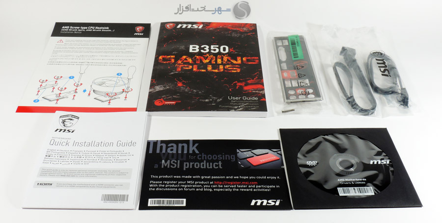 با وجود همه این قابلیتها باید دید این مادربرد در عمل چه تواناییهایی دارد. پس بدون فوت وقت به سراغ جعبه گشایی این محصول میرویم. با باز کردن جعبه، مادربرد در پوشش پلاستیکی ضد الکترواستاتیک خود قرار گرفته و باقی متعلقات در لایه زیرین جای گرفته اند که شامل موارد زیر است: