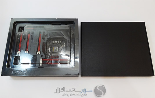 محتویات داخل این بسته بندی همان طور که در تصویر بالا ملاحضه می کنید در دو پکیج مجزا تعبیه شده است. پکیج اول که مادربرد در آن تعبیه شده است و دارای روکش شفاف طلقی می باشد.
