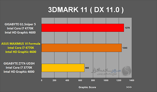 همانطور که اطلاع دارید یکی از نقاط قوت معماری Haswell بهبود کارایی و افزایش امکانات و قابلیت های تراشه های گرافیکی مجتمع بر روی پردازنده های این معماری می باشد. به همین دلیل در این بخش قصد داریم توسط نرم افزارهای 3DMARK و چند گیم جدید و مدرن کارایی تراشه گرافیکی Intel HD Graphic 4600 مجتمع بر روی پردازنده Intel Core i7 4770K را بر روی این مادربرد محک بزنیم.