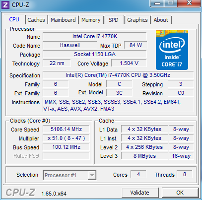 لازم به ذکر است در تمامی پلتفرم ها تنظیمات Bios در حالت پیش فرض تنظیم شده اند، در پلتفرم کنونی نیز تنها قابلیت Intel XMP برای ماژول های حافظه فعال شده است. در تصاویر زیر می توانید از نگاه نرم افزار CPU-Z مشخصات و تنظیمات سیستم را ملاحضه کنید :