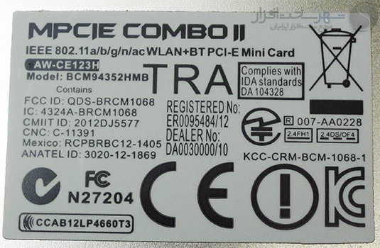 همانطور که در تصویر ماکرو برچسب تعبیه شده بر روی این ماژول مشاهده می کنید، این قطعه مجهز به چیپ BCM94352HMB ساخت کمپانی Broadcom است که تکنولوژی های بی سیم Dual-band 2.4GHz/5GHz Wi-Fi 802.11a/b/g/n/ac و Bluetooth v4.0/3.0+HS را برای این مادربرد فراهم می کند. اما این تنها قابلیت این ماژول نیست !