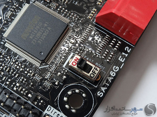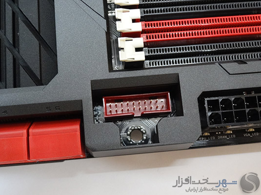 همچنین در این بخش همانند سایر مادربردهای سری ROG ،سوئیچ های Clear CMOS برای ریست تنظیمات Bios و سوئیچ ROG Connect برای بازیابی Bios از روی USB Flash و یا کنترل پارامترهای این مادربرد بر روی سیستم های دیگر به واسطه کابل مخصوص ROG Connector نیز در نظر گرفته شده است.