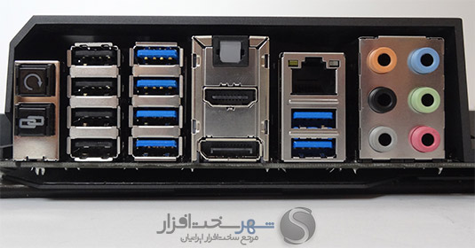 در پنل پشتی این مادربرد نیز همانند اکثر مادربردهای Gaming خبری از پورت های D-Sub و DVI نیست. تنها دو پورت HDMI 1.4a و Display Port 1.2 خروجی های تصویر این مدل را تشکیل می دهند.