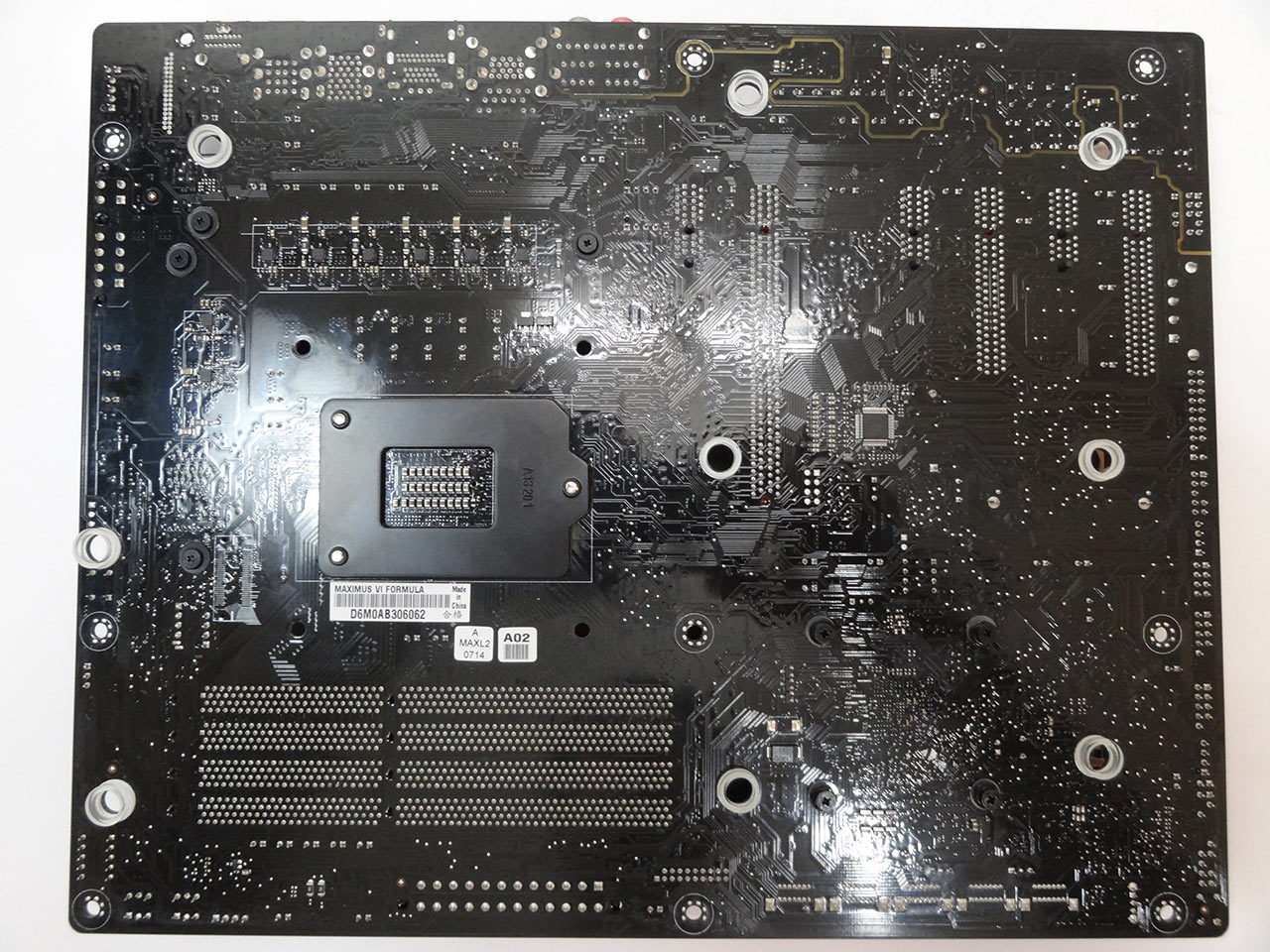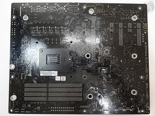 همانطور که ملاحضه می کنید 9 واشر پلاستیکی عایق در پشت مادربرد تعبیه شده تا از اتصال مستقیم بدنه فلزی اسکلت پشتی ROG Armor به اتصالات PCB مشکی رنگ این مدل جلوگیری کند.