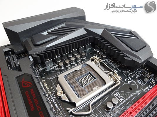 کمپانی ایسوس سیستم خنک کننده انحصاری این مادربرد را که توسط هیتسینک های تصویر بالا شکل می گیرد CrossChill hybrid thermal design نامیده است.