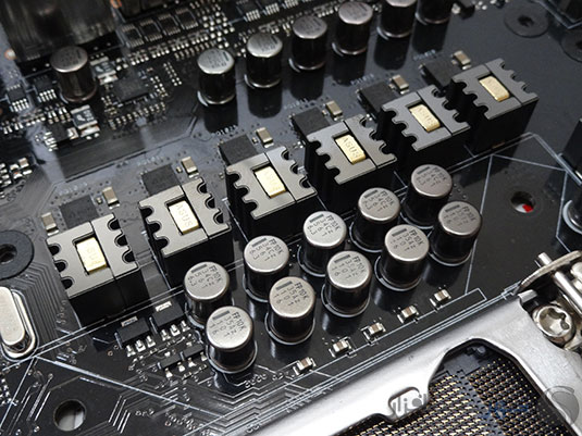 ماسفت های جدید به کار رفته در این مادربرد مدل 87350D ساخت کمپانی Texas Instruments می باشد که به صورت تئوری با پشتیبانی از سرعت سوئیچ تا 1.5MHz تحمل عبور جریان DC تا 40 آمپر را داراست . این ماسفت ها همچنین در جریان های کمتر از 25 آمپر راندمان مصرف انرژی بیش از 90% دارند.