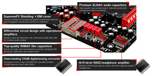 سیستم صوتی SupremeFX مشخصات فنی فوق العاده ای همچون SNR بیش از 120dB را با خود یدک می کشد ! اما چه قطعاتی باعث به وجود آمدن چنین نتیجه ای شده اند ؟