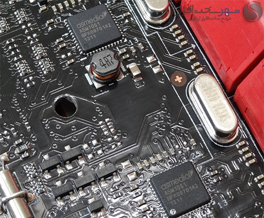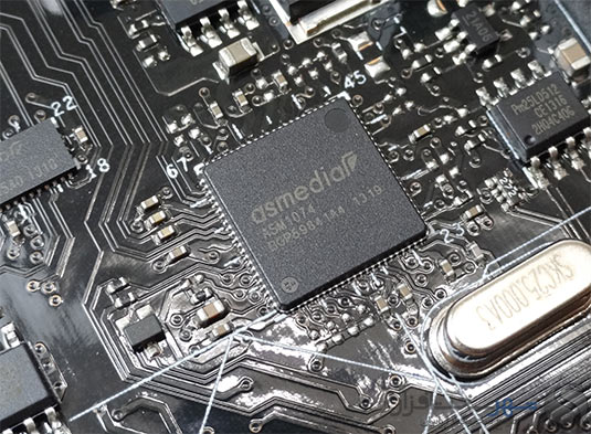4 پورت باقی مانده نیز از 2 عدد کنترلر مجزا ASMedia ASM1061 منشعب می شوند. هر یک از این کنترلر ها به واسطه رابط PCIe x1 دو پورت SATA 6Gb/s برای این مدل فراهم می کنند.