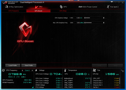 در بخش (Turbo Processing Unit (TPU که خود دارای 3 زیربخش تحت عنوان های CPU Frequency، CPU Strap و GPU Boost می باشد نیز تمامی پارامتر های لازم برای افزایش فرکانس ها و ولتاژ بخش های مختلف در نظر گرفته شده است.