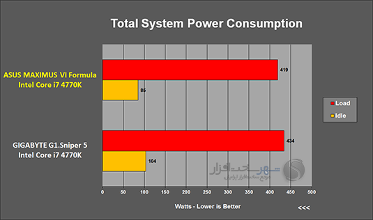 در این تست در حالت Idle ( ا15 دقیقه بدون هیچ فعل و انفعال از طرف کاربر) و Load ( پس 15 دقیقه اجرای تست Power Supply نرم افزار OCCT در ابعاد Full HD ) مقادیر حداقل و حداکثر توان مصرفی کل سیستم را ثبت کردیم. لازم به ذکر است تست Power Supply نرم افزار OCCT مشترکا CPU و GPU را تحت فشار قرار می دهد.