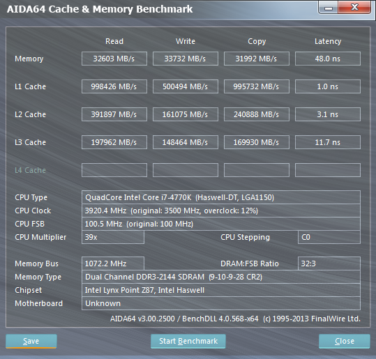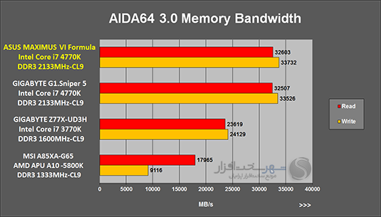 تست پهنای باند و Latency حافظه توسط نرم افزار AIDA64 3.0