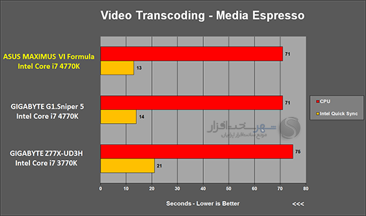 در این بخش توسط دو نرم افزار های CyberLink MediaEspresso Media Convertor 6.5 و x264 HD Benchmark 4.0 در همه زوایا، کارایی این پلتفرم را محک زدیم.