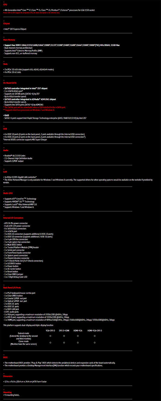 از امکانات و قابلیت های مشترک میان تمامی مادربرد های این سری می توان به بهره مندی آن ها از چیپ Ethernet Controller معروف Killer™ E2200 ساخت کمپانی Qualcomm Atheros، سیستم صوتی Audio Boost مبتنی بر کدک فوق العاده باکیفیت و مدرن ALC1150 کمپانی Realtek به همراه آمپلی فایر هدفون ، قطعات فوق العاده با کیفیت دارای استاندارد نظامی Military Class 4 به کار رفته در بخش های مختلف مادربرد و در کنار همه این ها امکانات و قابلیت های مدرن اورکلاکینگ اشاره کرد.