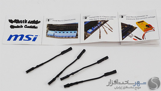 - 4 عدد کانکتور V-Check Cable برای نمونه برداری ولتاژ بخش های مختلف از روی گره های تعیین شده بر روی مادربرد