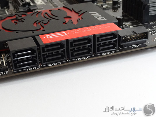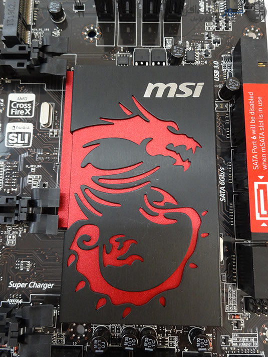 علاوه بر پورت های فوق، دقیقا در مرکز PCB این مادربرد یک عدد اسلات mSATA 6Gb/s تعبیه شده که قابلیت اتصال درایوهای SSD سازگار با این رابط را برای این مادربرد فراهم کرده است. البته باید این نکته را مد نظر داشته باشید که در صورت فعال شدن این گذرگاه، پورت شماره 6 گذرگاه های SATA غیر فعال خواهد شد.