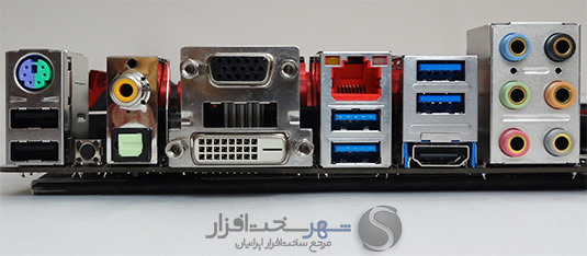 1 عدد پورت Gigabit LAN منشعب از چیپ Killer E2200 به همراه خروجی های صدای Coaxial / Optical S/PDIF و جک های 3.5mm ا7.1 کاناله نیز سایر پورت های این پنل را تشکیل می دهند.