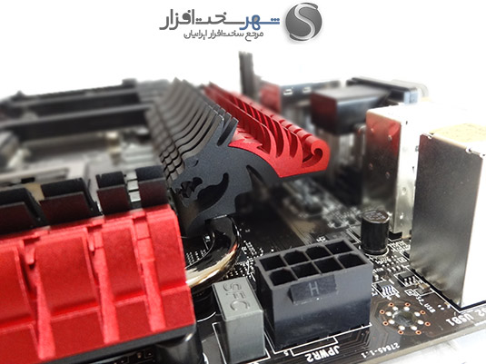 حقیقتاً PCB قهوه ای رنگی به همراه ترکیب رنگ قرمز به کار رفته در هیتسینک های این مدل به همراه لوگو حکاکی شده "ارتش اژدها" بر روی هیتسینک بزرگ چیپست PCH Z87 رنگ و لعابی دیدنی به این مدل بخشیده اند.