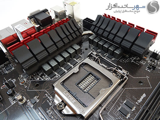 مدار رگولاتور ولتاژ پردازنده در این مادربرد از نوع 12Phase Digital PWM است که تمام قطعات به کار رفته در آن دارای استاندارد نظامی Military Class 4 می باشند. اما برای داشتن اشراف بیشتر نسبت به این قطعات اجازه دهید ابتدا هیتسینک های این بخش از مادربرد را باز کنیم.
