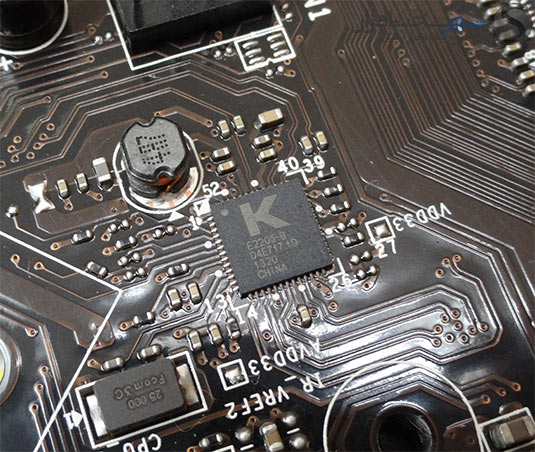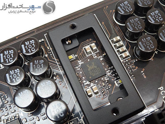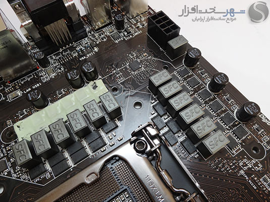 همچنین چیپ های Mosfet Driver مدار رگولاتور ولتاژ پردازنده نیز در پشت PCB تعبیه شده اند. البته به دلیل ماهیت عملکرد این نوع چیپ ها، نیازی به تعبیه هیتسینک برای آن ها وجود ندارد.