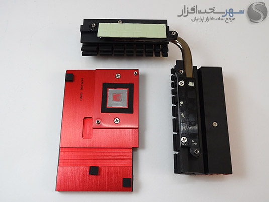 همانطور که در تصویر بالا ملاحضه می کنید، هیتسینک های تعبیه شده بر روی این مدل به دو بخش تقسیم می شوند که توسط 6 عدد پیچ فنر دار در پشت PCB بر روی برد نصب می شوند.