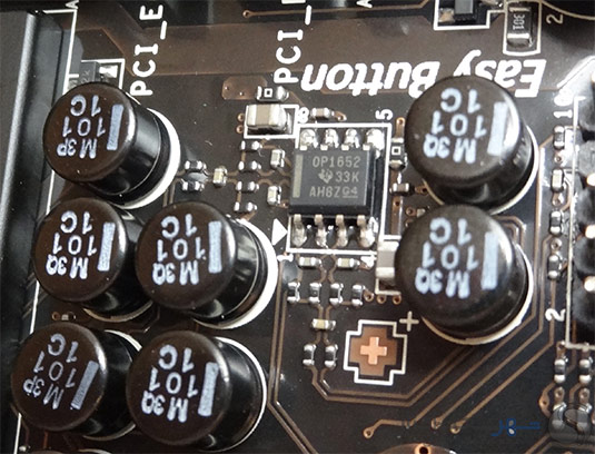 در تصویر بالا چیپ های Bios مدل 25Q64FVS ساخت کمپانی Winbond را ملاحضه می کنید. این چیپ ها که Flash Memory سریال با حجم 64Mb می باشد، UEFI Bios این مادربرد را در خود جای داده اند.